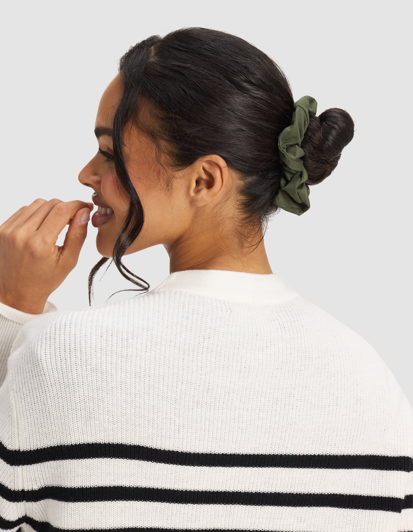Give your locks a taste of luxury with our Bamboo Stretch-Knit Scrunchies. Made from bamboo viscose, these sleek, minimalist hair accessories are the perfect alternative to traditional hair elastics. Our premium stretch-knit fabric keeps strands gently secured all day and throughout the night—without causing creasing or tension. Packaged in a reusable drawstring bag that makes for the perfect travel jewelry pouch.