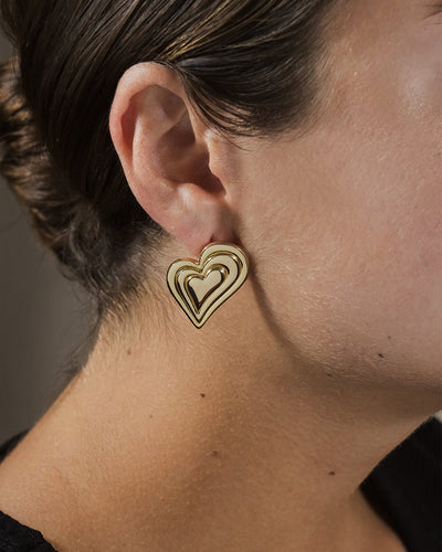 Add a touch of sophistication to any outfit with our Statement Beating Heart Studs. These stunning stud earrings are the perfect statement piece, featuring a metallic heart design that will catch everyone's eye. Elevate your style with these exclusive and elegant earrings.
