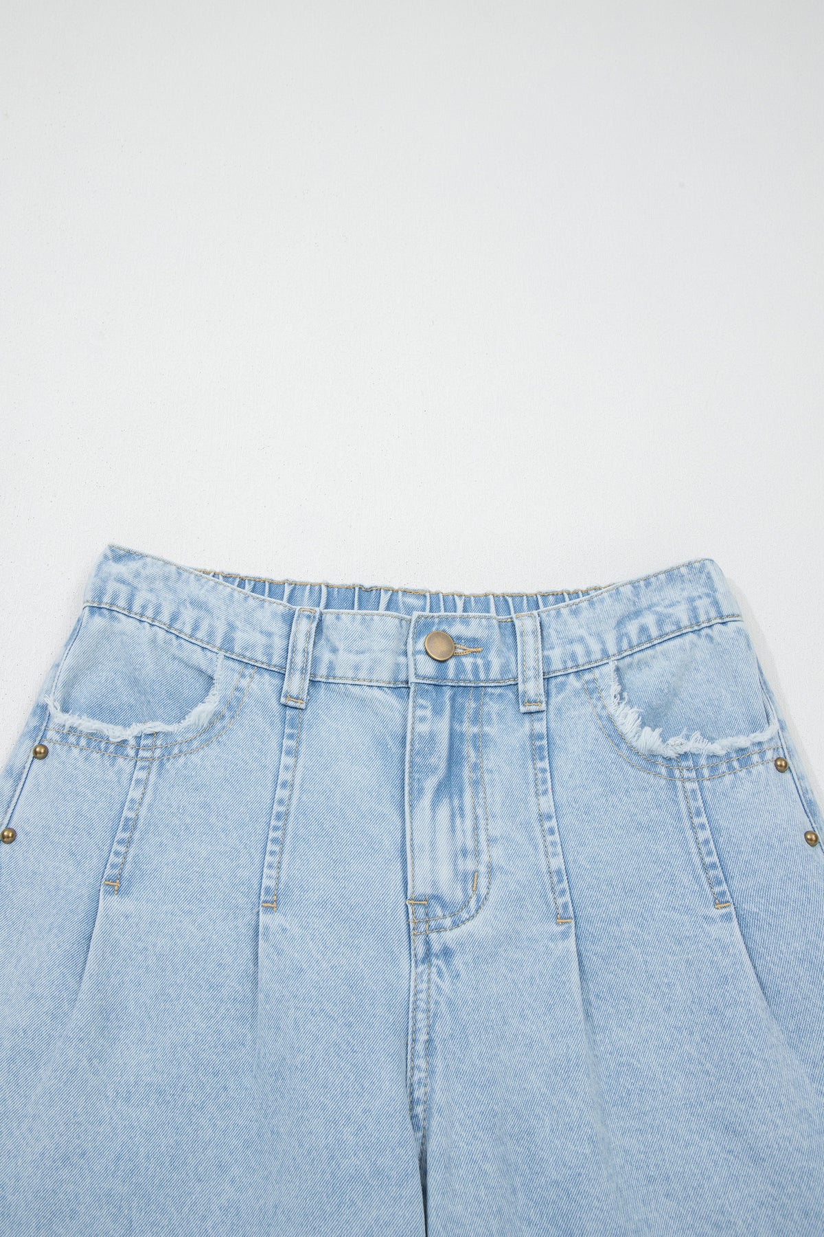 Beau Blue Studded Side Slit Leg Frayed Pocketed Wide Leg Jeans
