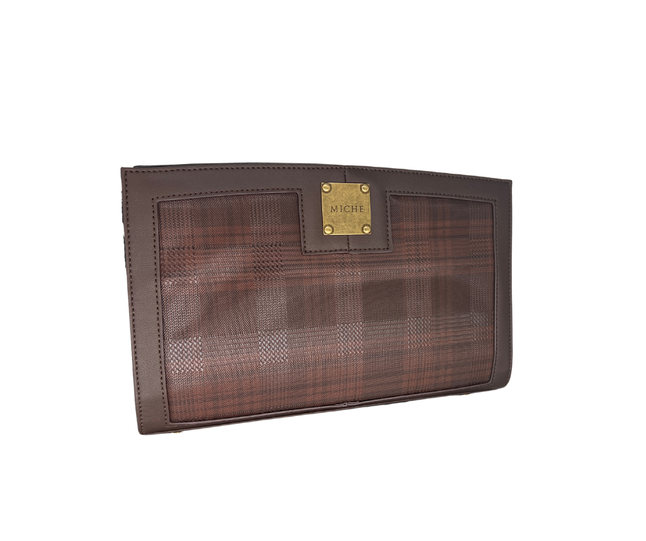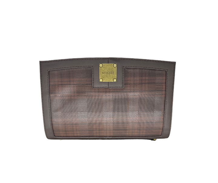 Brooks Classic brings a whole new meaning to rich chocolate. It is lush with a hint of soft, smooth, velvety undertones. Smooth faux leather brown tones mixes with luscious milk chocolate plaid texture inlay and antique brass hardware is sure to satisfy anyones craving for something new. Brooks Classic is a fold on shells so be sure to get some brown pockettes if you need more pockets to hide our sweet treats in! She also has matching hardware on her feet!