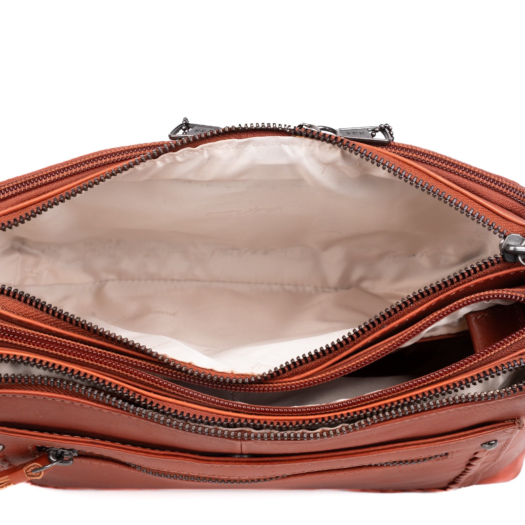 Keep your look classy and sophisticated with the beautiful concealed carry Tatum Crossbody by Lady Conceal. Tucked away safely is your firearm or weapon of choice.