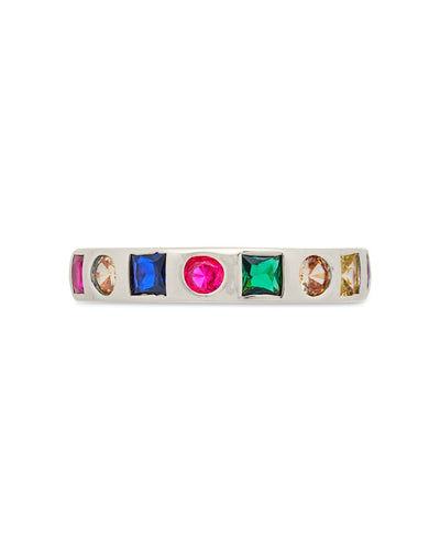 Liven up your look with this Courtney Ring! This sparkling band ring features rainbow-hued CZ stones in a wild array of shapes - it's like a rainbow, but better! (Let's be real, rainbows don't sparkle nearly as much!) Get ready to rock a look that turns heads - in all the colors of the wind.