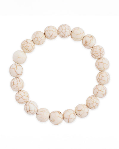 Enhance your wrist with our luxurious Cream Howlite Beaded Stretch Bracelet. The rich tones of this bracelet are sure to elevate any outfit, while the smooth marble beads add a touch of sophistication. Stretch design for easy wear and comfortable fit. Elevate your style with this elegant accessory.