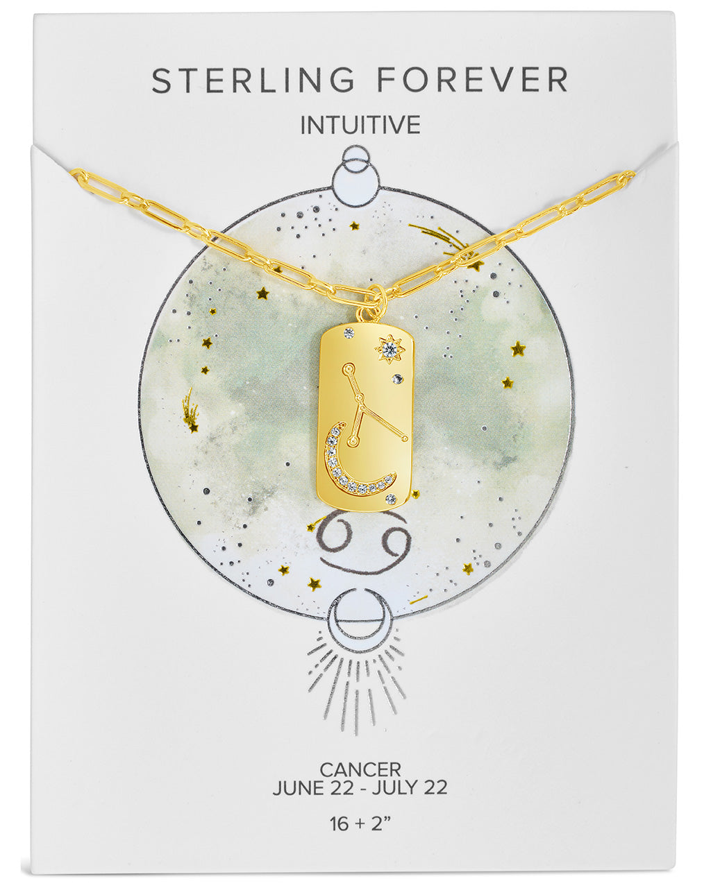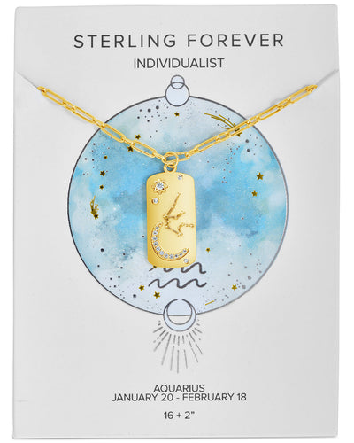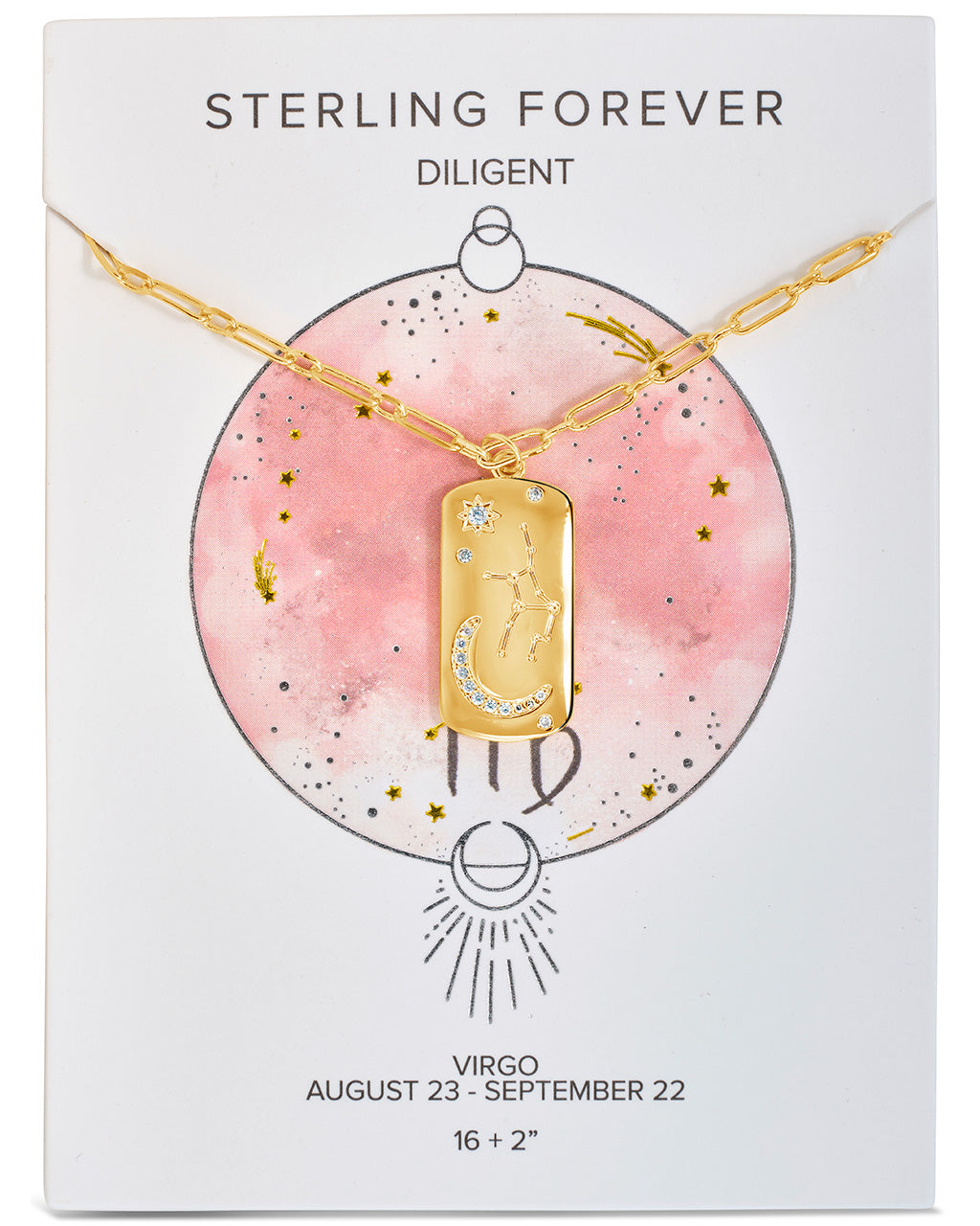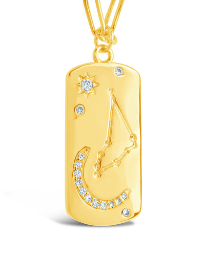 Look to the stars, and you'll never be led astray! This dog tag necklace features your very own zodiac sign's constellation. Choose from all twelve signs and from gold and silver metal tones.