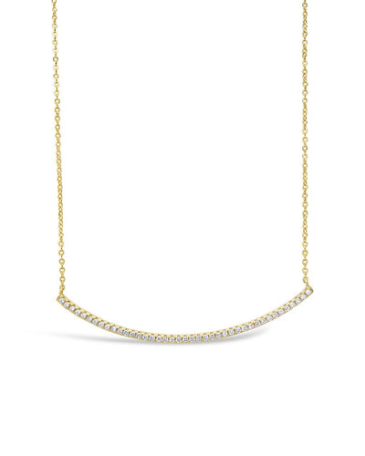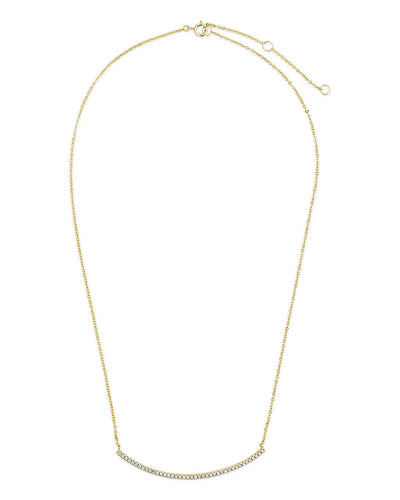 Simple and sparkling, this CZ curved bar necklace is an ideal accessory for anyone looking for the perfect finishing touch on that super-stylish outfit. The delicate curved bar is studded with tiny, shining CZ stones. Available in silver and gold tones, and adjustable for a perfect fit.