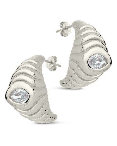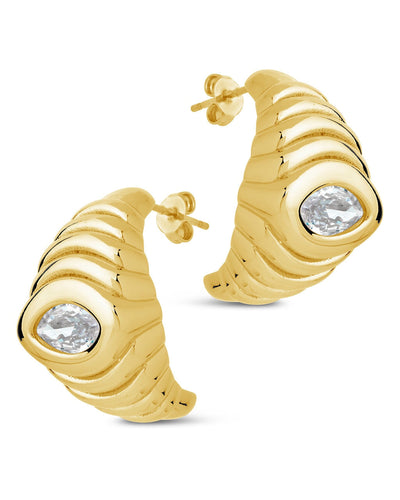 Indulge in luxury with our CZ Studded Croissant Hoop Earrings. Channel your inner French fashionista with these statement earrings, intricately designed to resemble a delicate croissant from a Parisian patisserie. Each CZ stone adds a touch of opulence, making these hoops a must-have for any elegant ensemble.