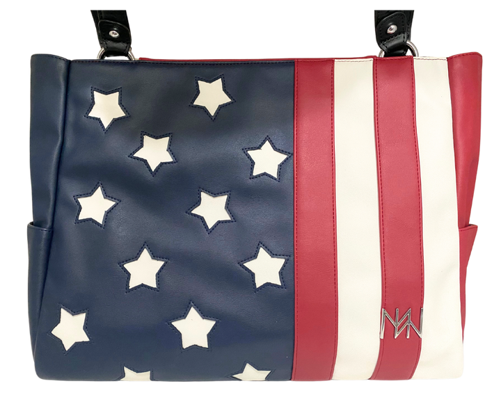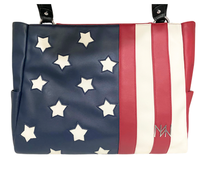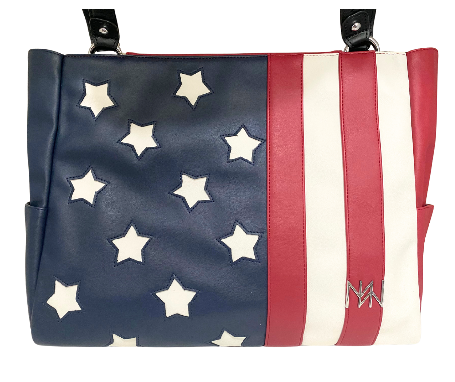 Miche is celebrating American’s patriotic spirit with the red, white and blue! This faux-leather Dixie Prima Miche shell will be a fun style for your summer outings. Picnics, county fairs, and barbecues will be a great place to show off your Dixie Prima bag! Silver hardware with end pockets.