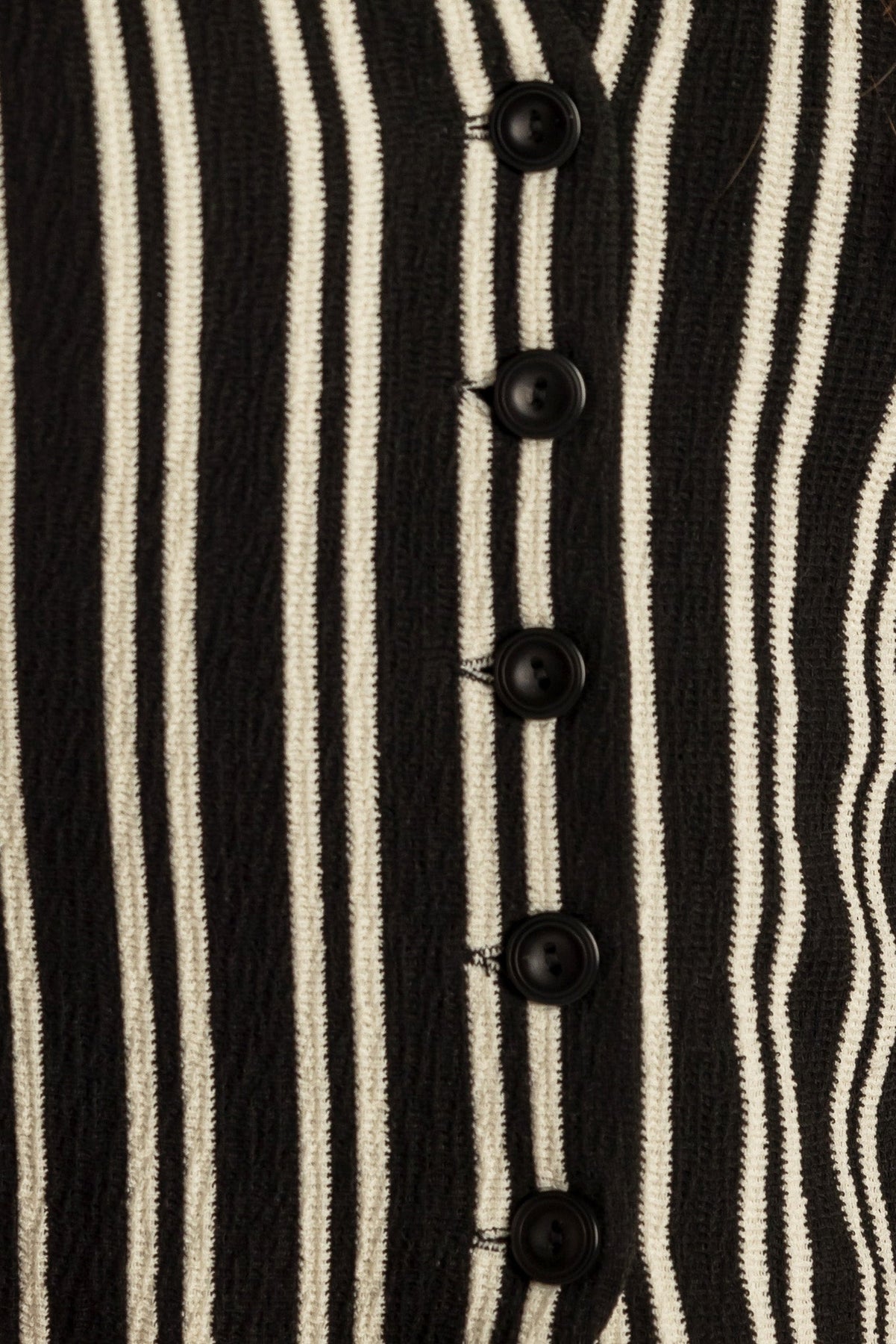 A striped black and white woven vest featuring sleeveless and front button closure. Matching pant FP1468