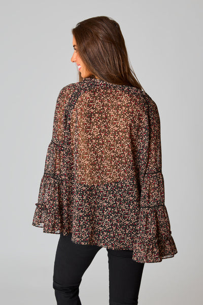 Our brand new Mason Blouse is one of our fall launch favorites! She features bell sleeves, ruffle detailing, a loose and flattering fit, and a v-neck. Pair her with skinnies and sneakers on the go or our Peyton Black Leather Shorts and booties for a brunch look!