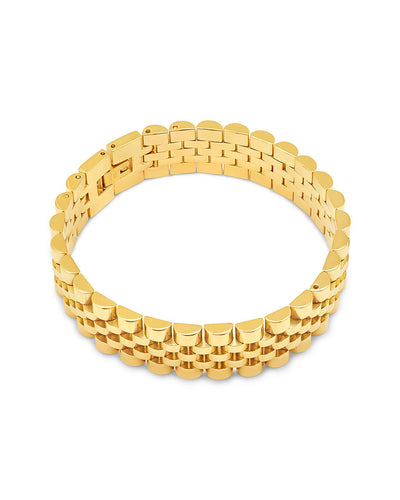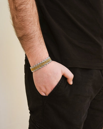This sleek and sophisticated watch band chain bracelet is the perfect statement piece for any gentleman. Elevate your style with this luxurious men's jewelry that combines fashion and function. Make a bold statement with this exclusive accessory.