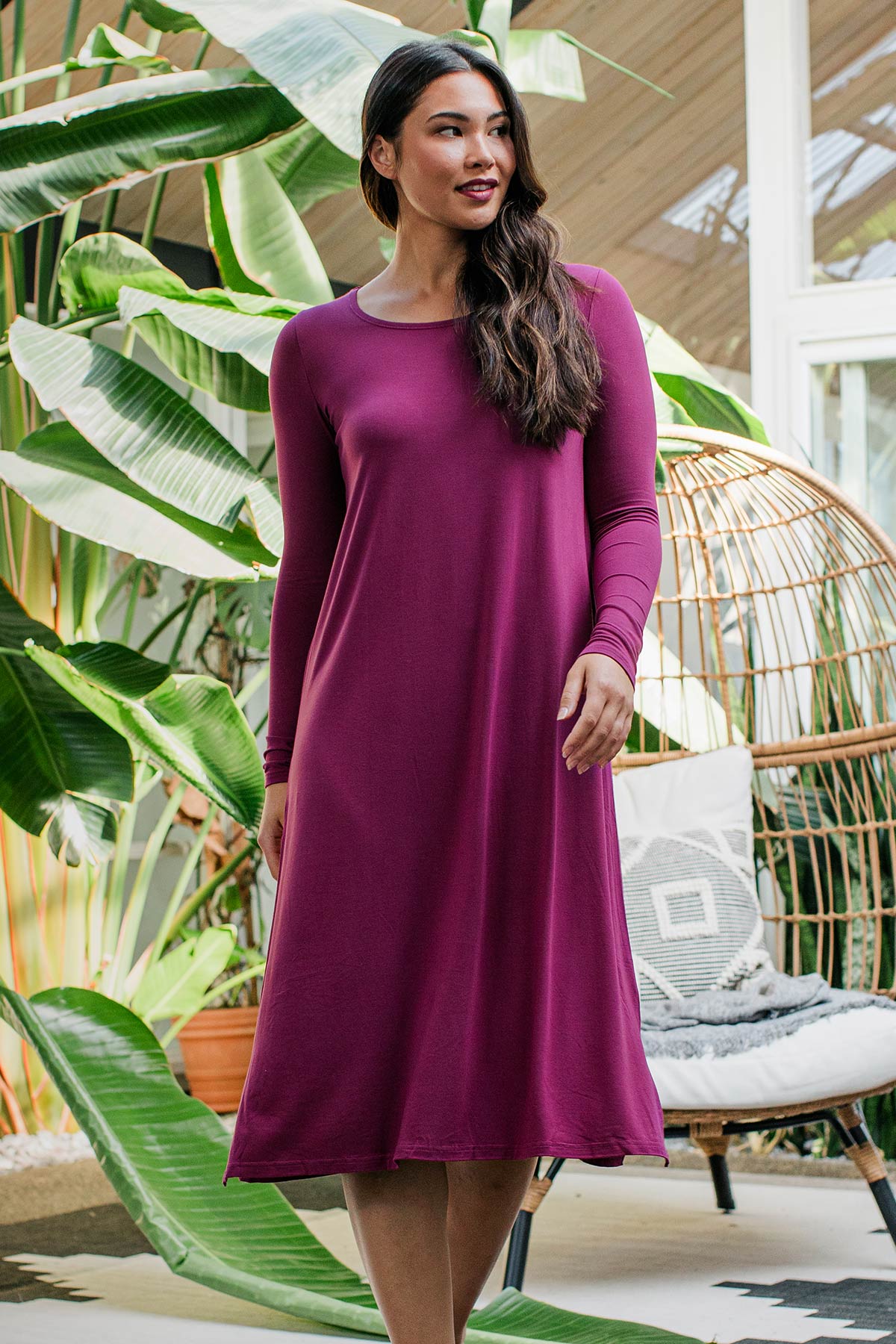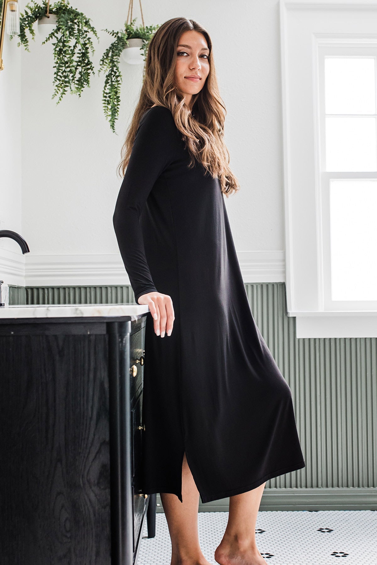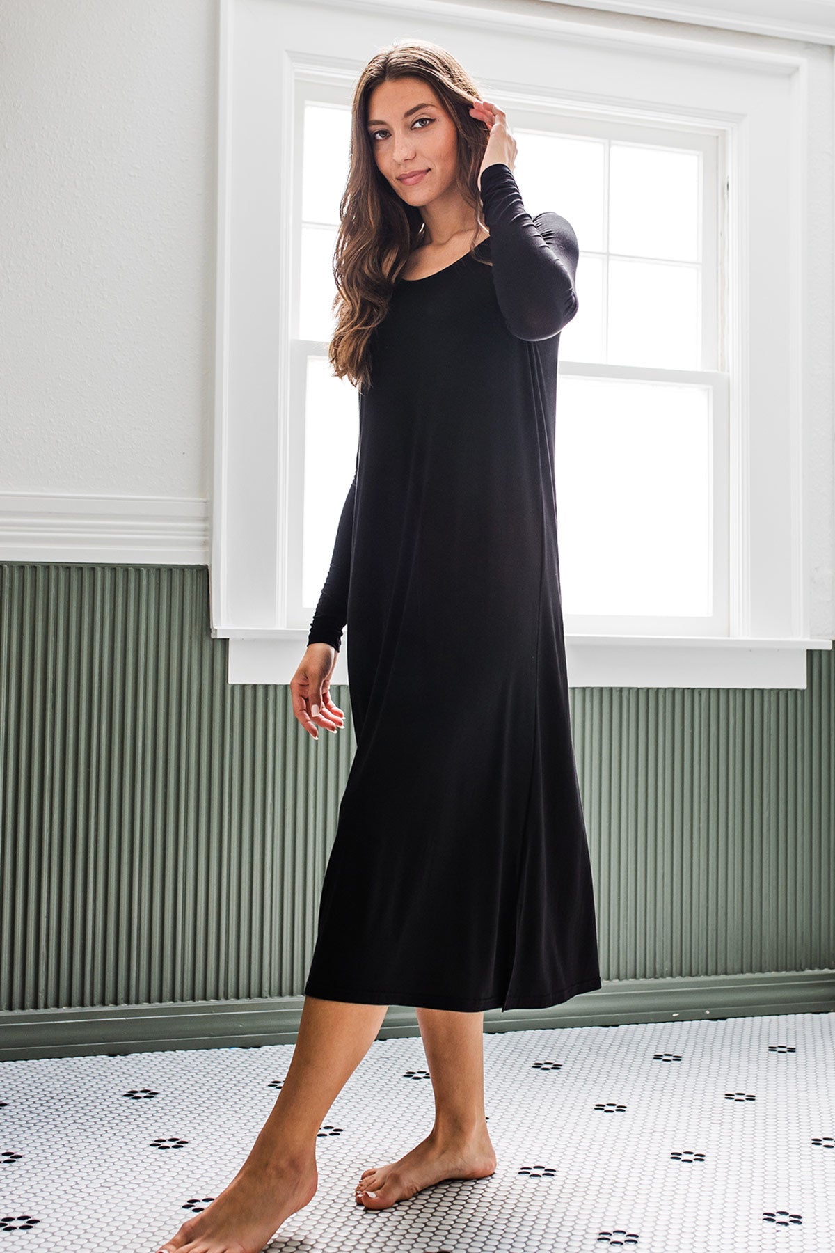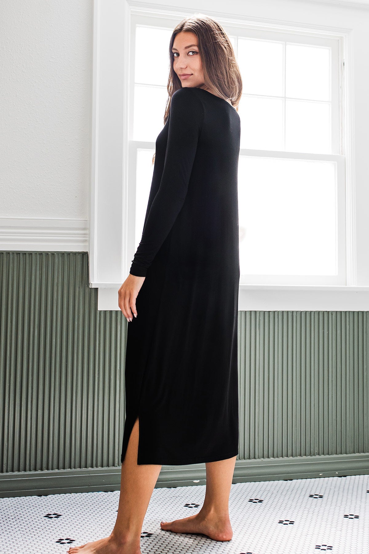 Cue hibernation mode with the Neesha Nightgown! This full-coverage nightgown features a shallow scoop neck, full-length sleeve, and mid-calf hemline with side slits for easy movement.