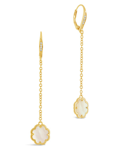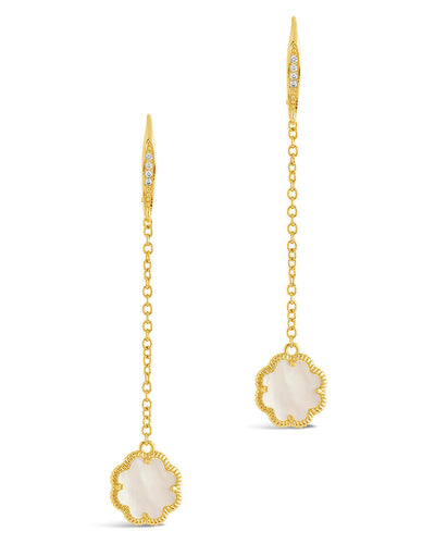 Add a gorgeous garden of earrings to your jewelry box, thanks to these earrings! This pair features a dangling organic floral design. Available in gold and silver tones with mother of pearl, onyx, and malachite stones.