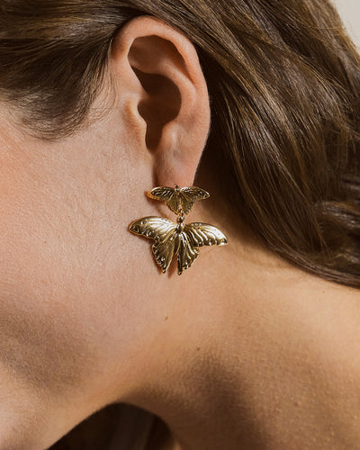 Elevate your look with our Rowena Drop Studs. These stunning statement earrings feature a captivating butterfly design that will add an elegant touch to any outfit. Indulge in luxury and sophistication with this must-have accessory.