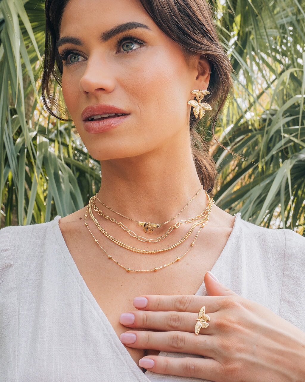 Indulge in the beauty of nature with the Rowena Ring. This exquisite piece features a delicate butterfly design, making a statement on your finger. Let this luxurious ring bring a touch of elegance to your wardrobe.