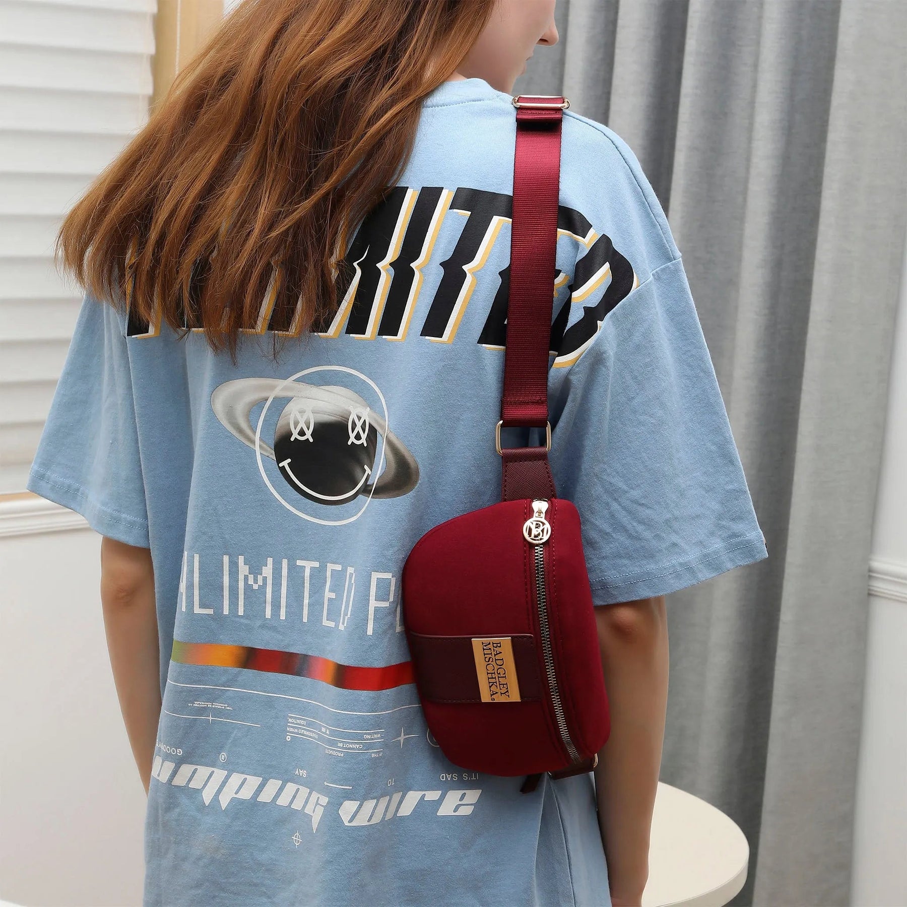 Featuring an adjustable strap and a roomy interior, this belt bag can accommodate all your travel essentials while keeping them safe and secure. The neoprene material adds a sporty touch while the vegan leather gives it a classic look, making it the perfect fusion of functionality and style.