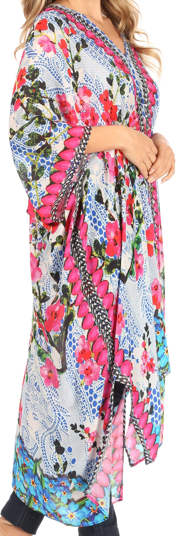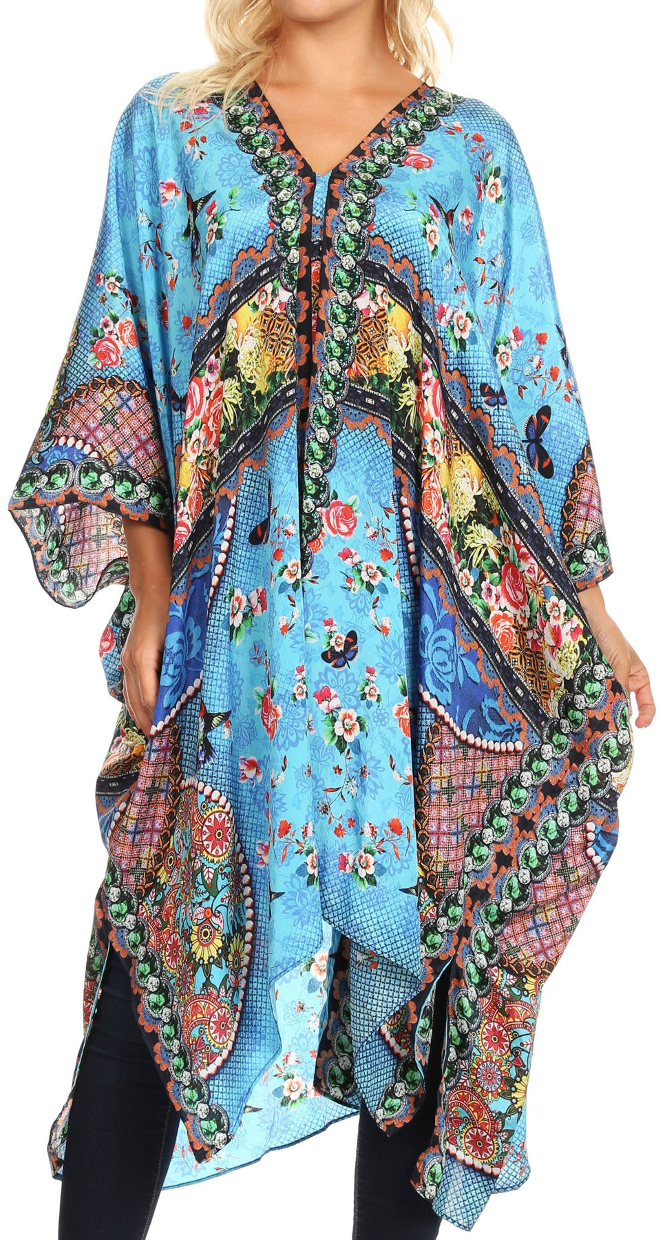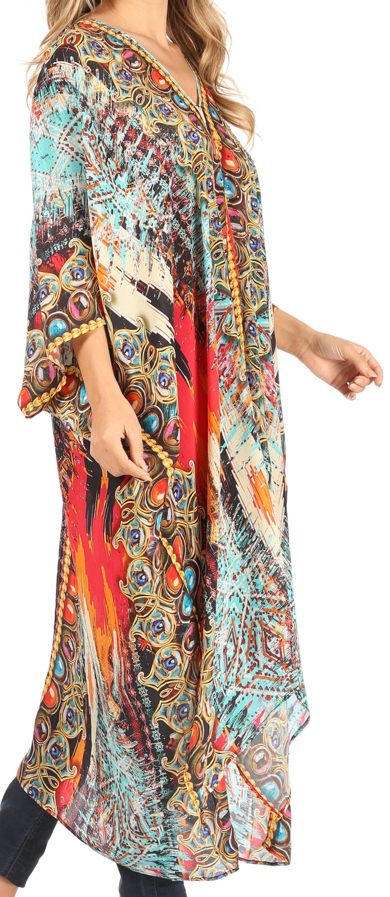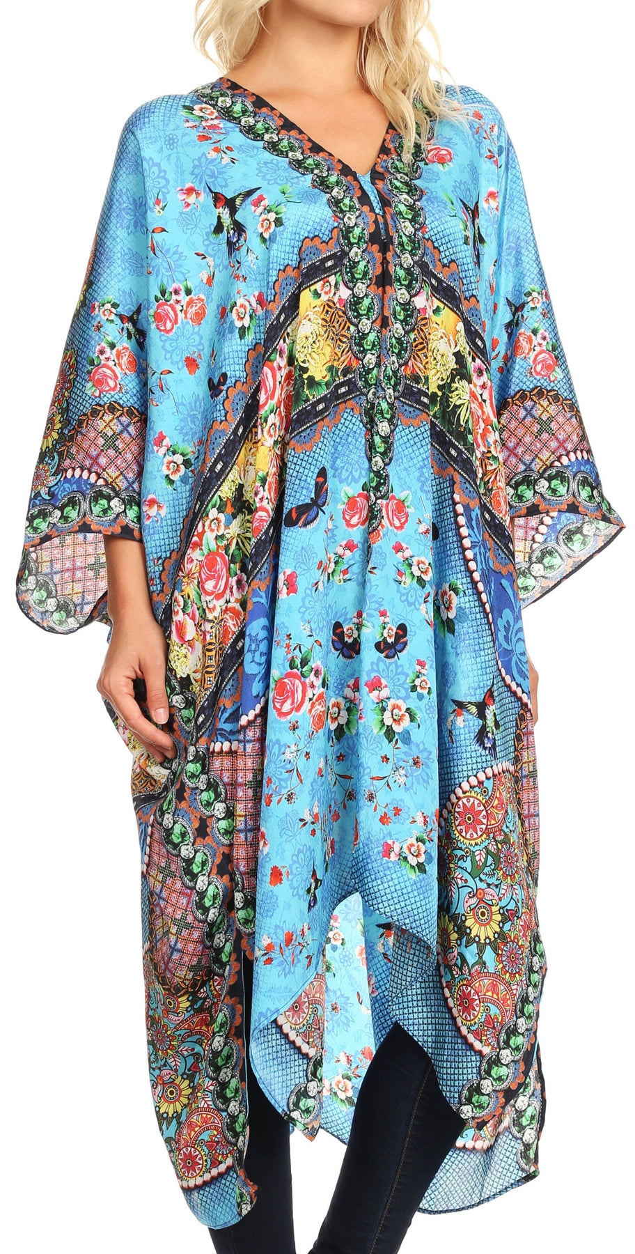 Sakkas Alvita Women's V Neck Beach Dress Top Caftan Cover up with Rhinestones