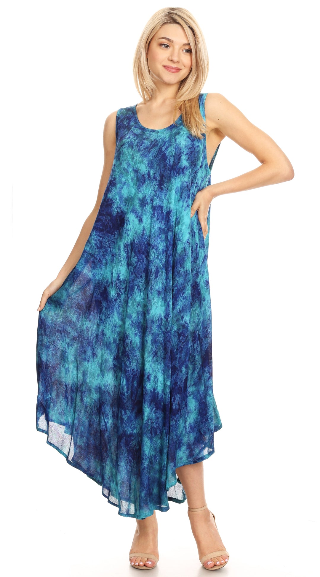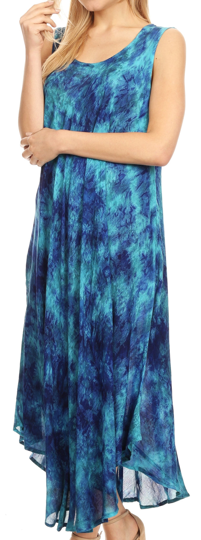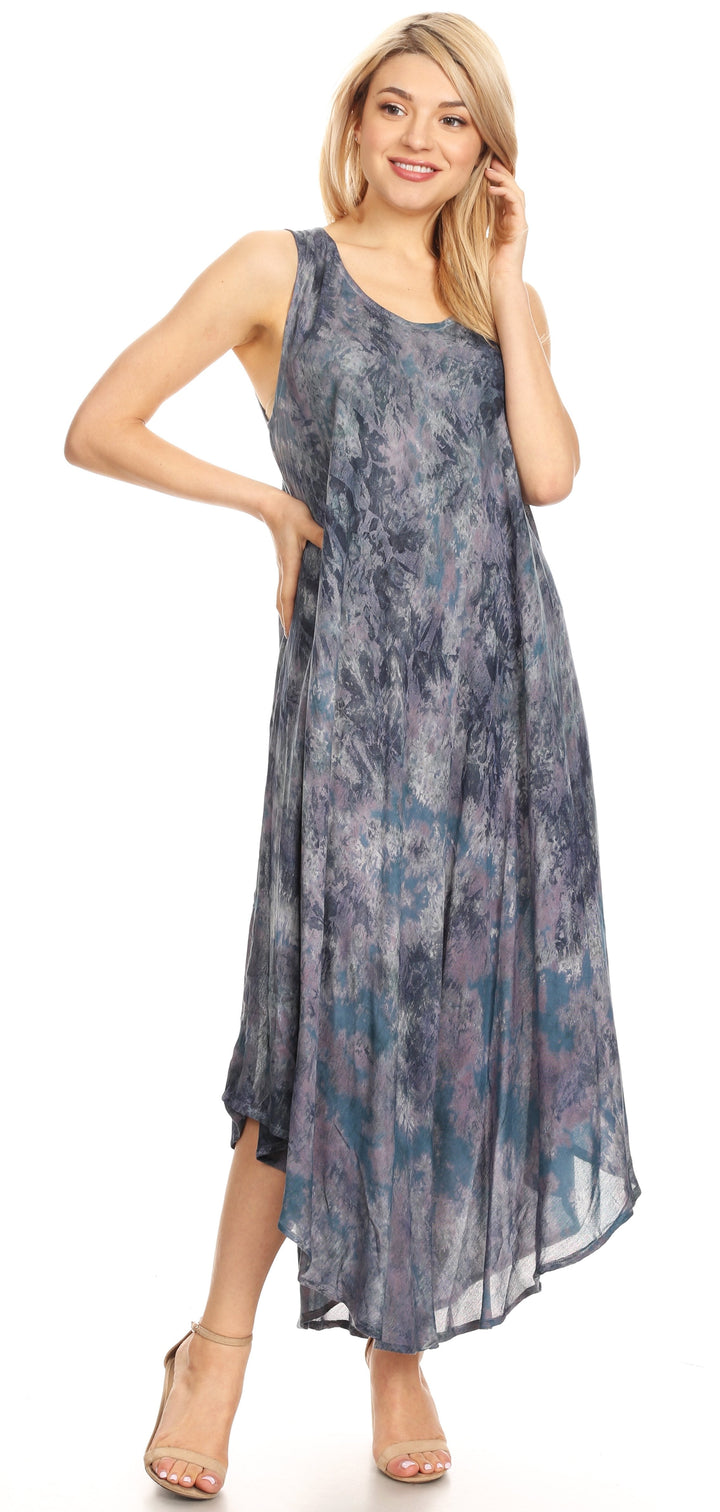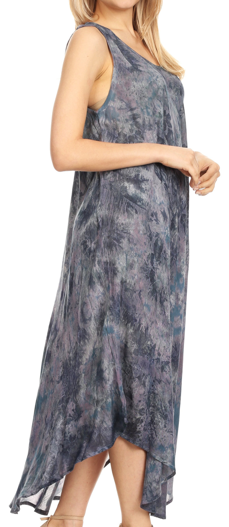 Sakkas Irene Women's Casual Tie-dye Maxi Summer Sleeveless Loose Fit Tank Dress