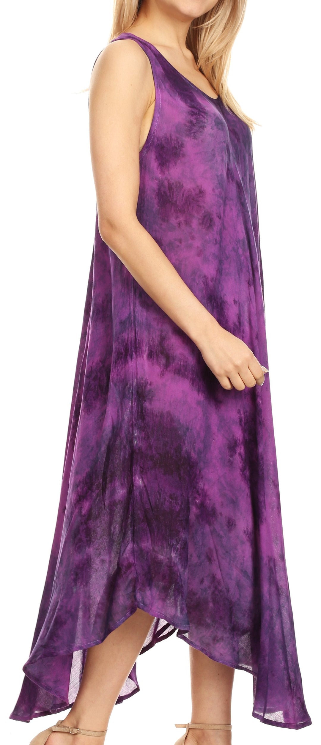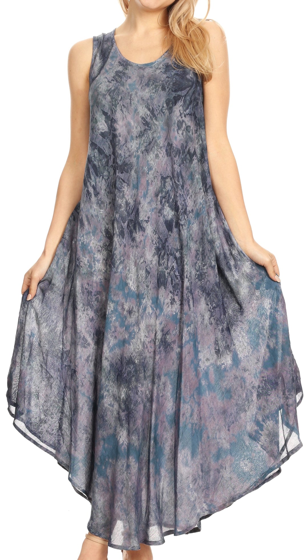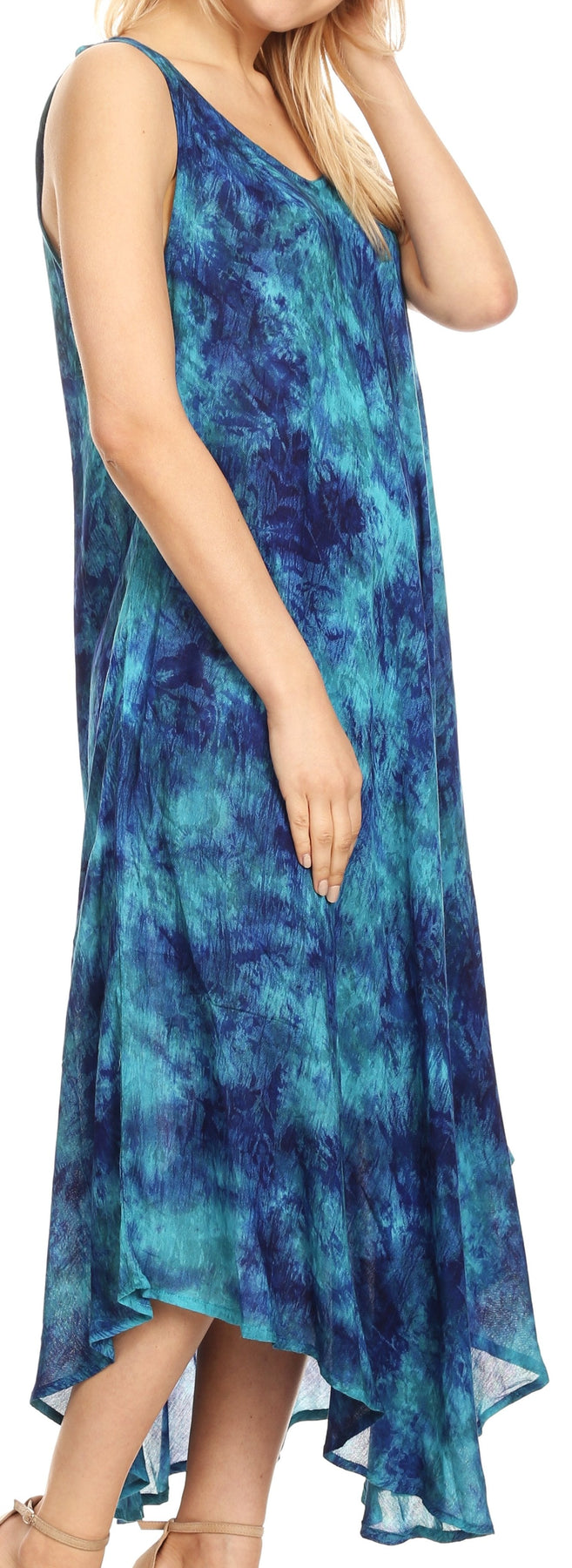 Sakkas Irene Women's Casual Tie-dye Maxi Summer Sleeveless Loose Fit Tank Dress