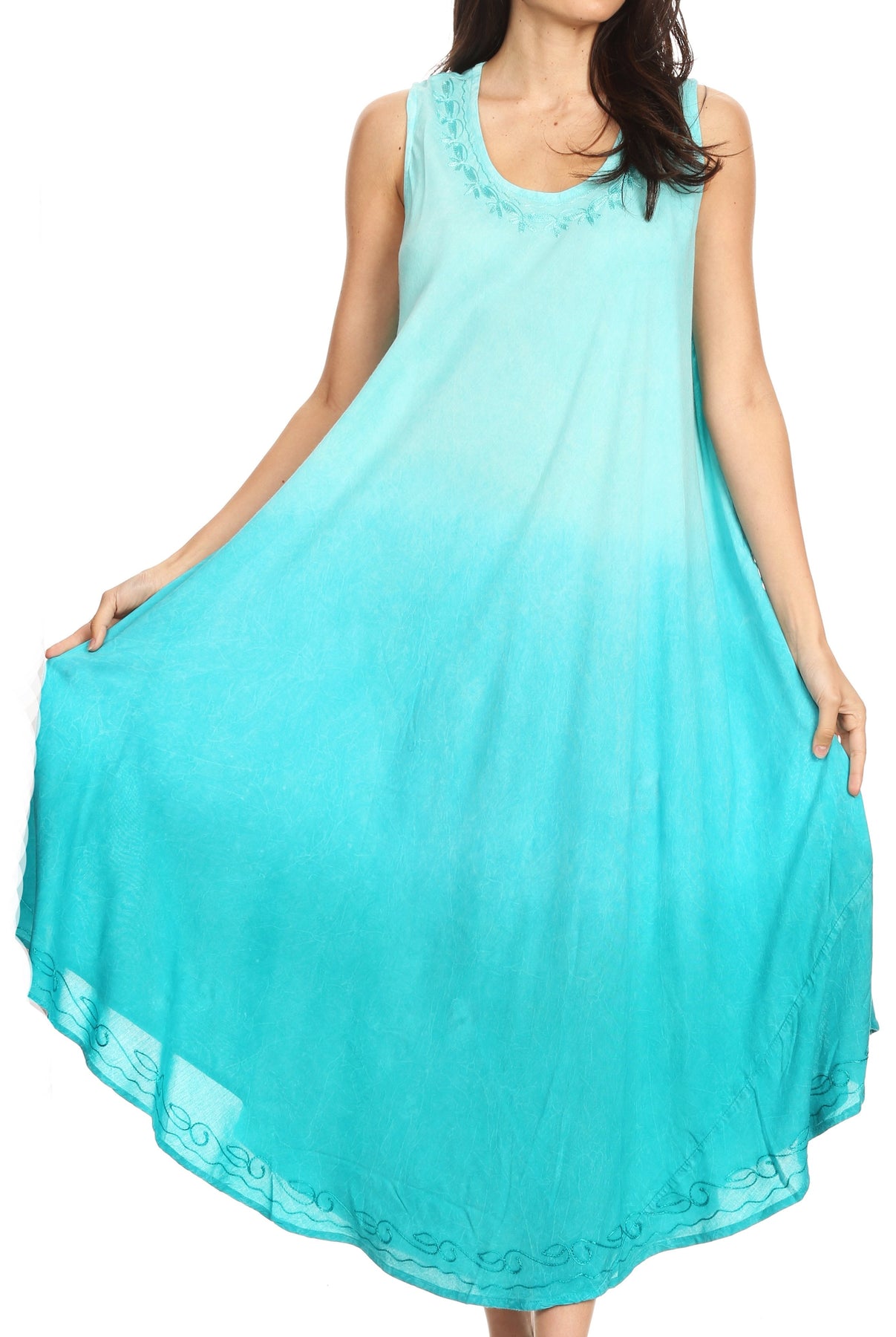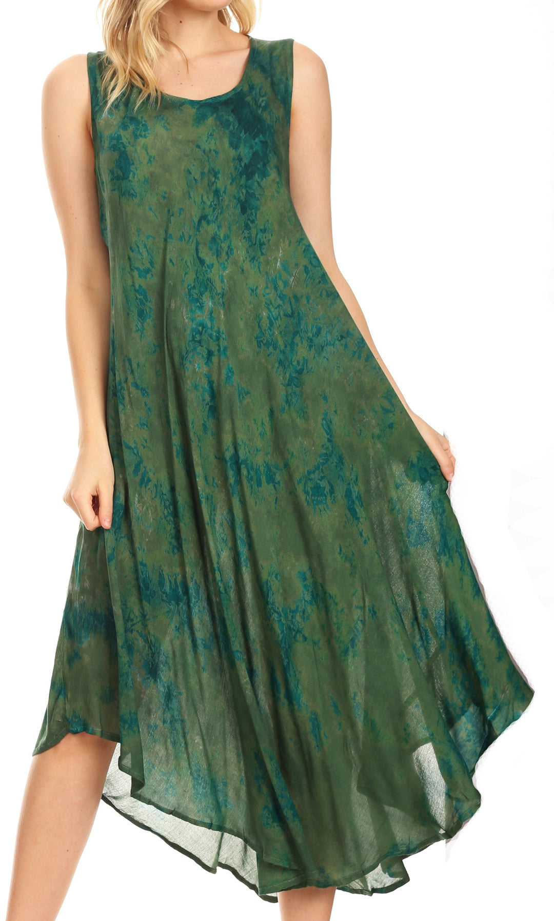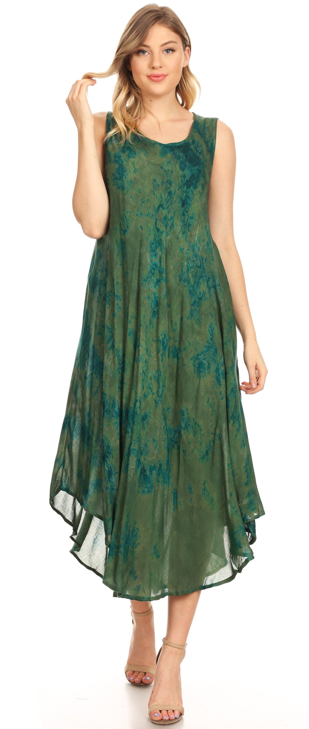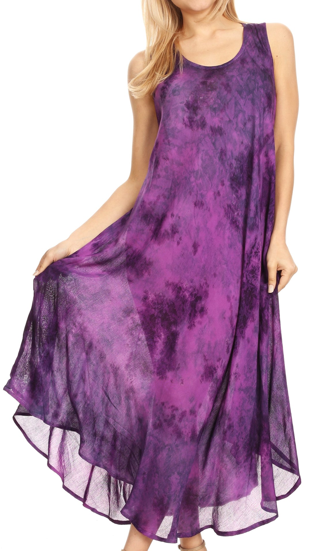 Sakkas Irene Women's Casual Tie-dye Maxi Summer Sleeveless Loose Fit Tank Dress