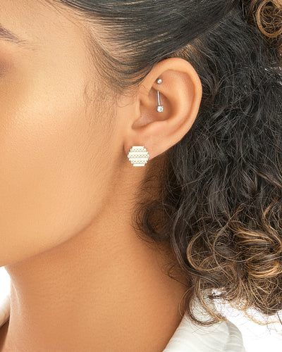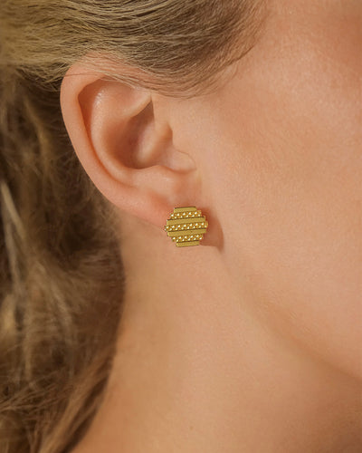 These sweet studs will add a touch of glam to any outfit! Finish off your look with these stud earrings that feature both smooth and textured layers. Available in gold and silver tones.
