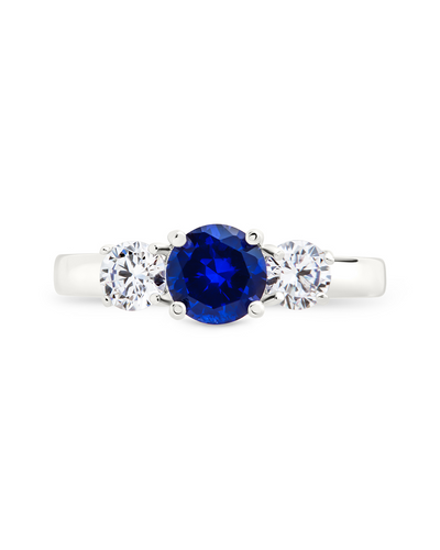Sterling Silver Sapphire CZ Three Stone Ring
