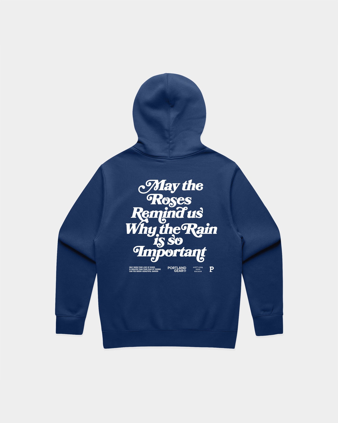 May the roses remind us why the rain is so important, let that sink in. This slogan design is a positive way of looking at the rainy season and what its here for. Without the rain, we would not be the Rose City.