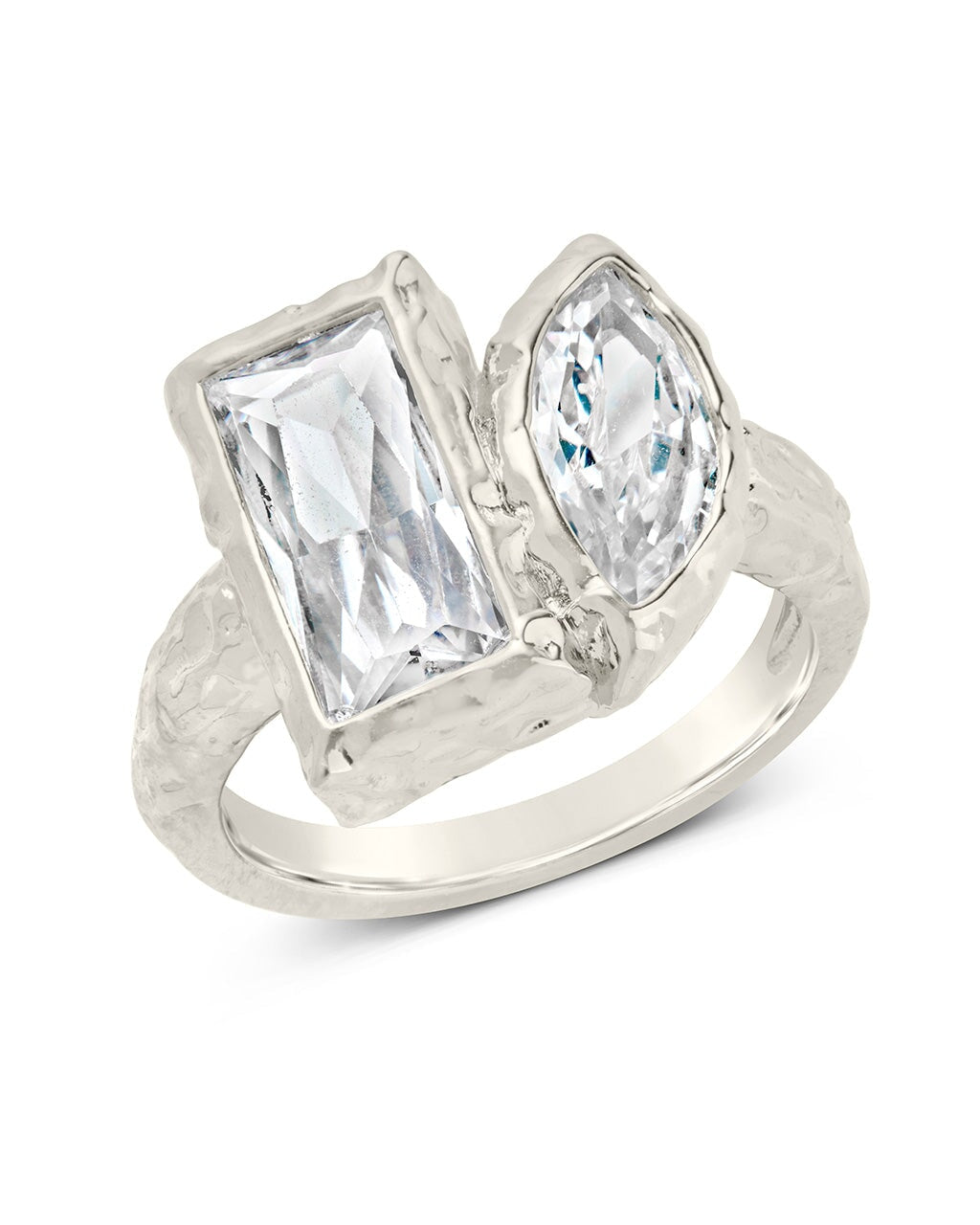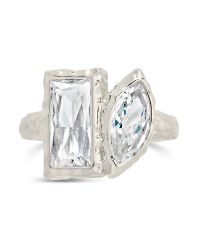 This sweet pair of stones gives this ring something special and unique! You'll love showing off this bold piece with a square and an oval stone. Available in gold and silver tones.