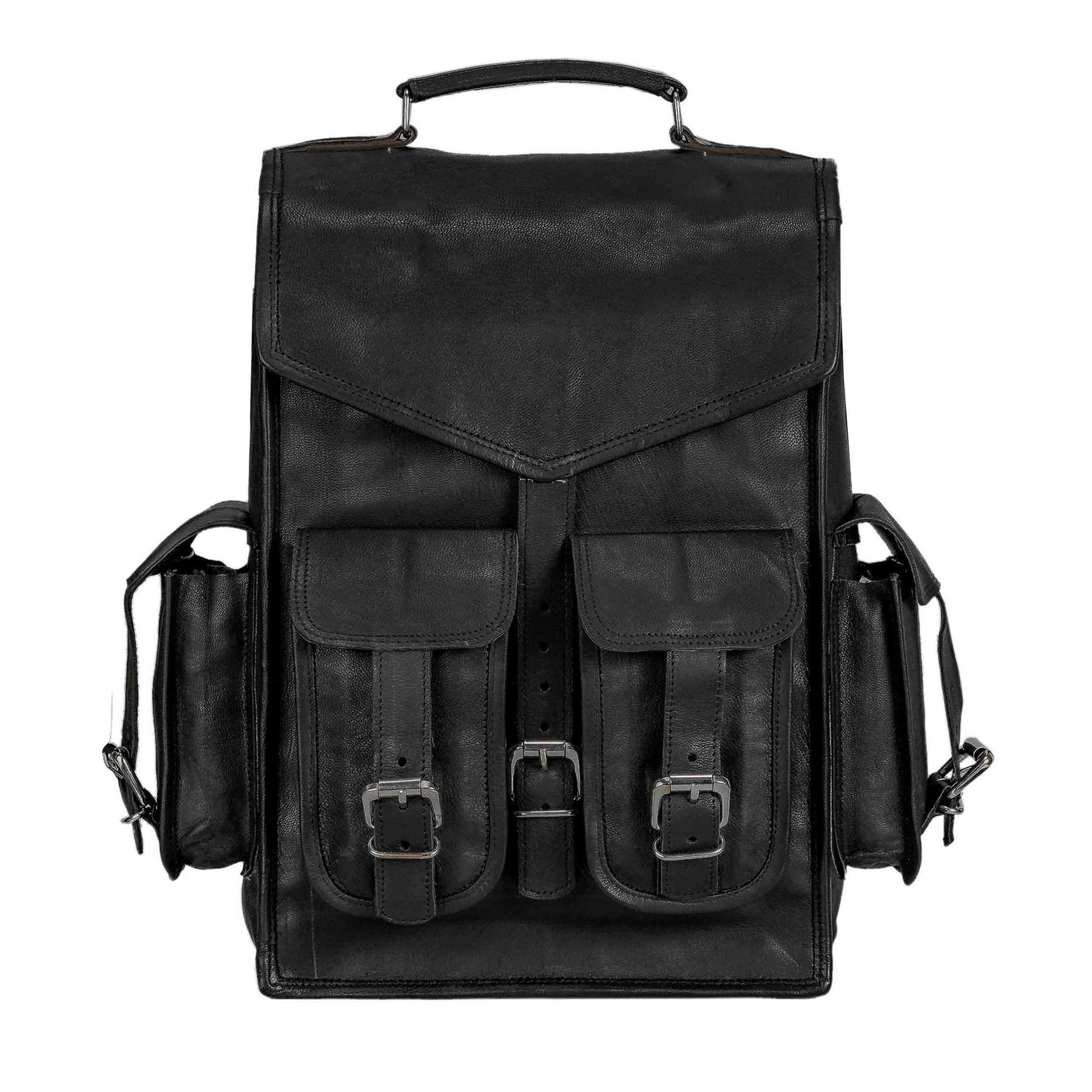 xThis versatile and stylish black leather backpack and messenger bag is an ideal choice for carrying your daily essentials in style. The bag serves multiple purposes, as it can be carried as a backpack and also as a messenger bag. It comes with four outer pockets to provide enough space for carrying small accessories. The flap comes with a smart buckle lock to provide ease of use. The inside main compartment is spacious enough to carry small laptops, tablets, etc. The compact size also makes it travel-friendly.