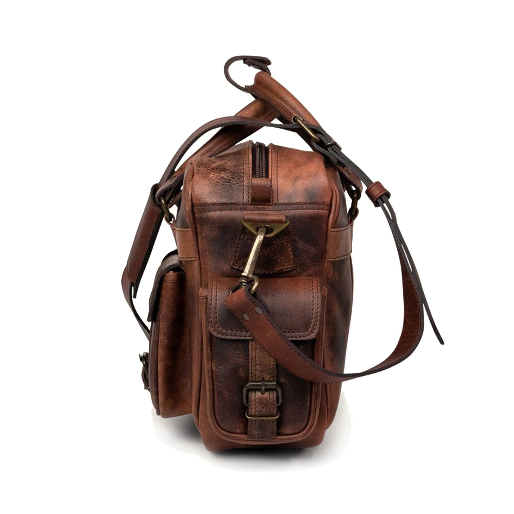 Our Wilson Leather Pilot Briefcase is crafted from water buffalo hide, has a green canvas-lined interior, and genuine brass and iron hardware. It’s 16" long, 12 high, and 5" wide, the ideal size to hold a 15" laptop. Designed with four buckled exterior pockets and a roomy interior with zippered pockets, this bag is designed to securely hold the items you need to bring along on your travels.