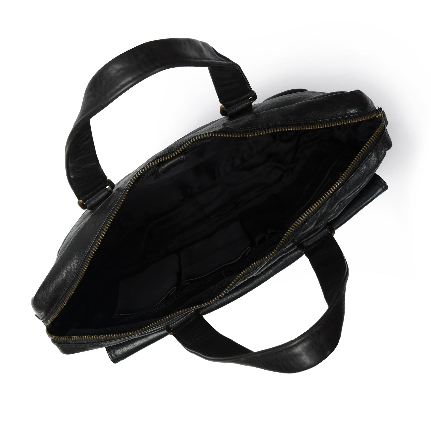 The Modern Briefcase Black is designed for the modern professional who values both elegance and functionality. Crafted from premium leather in a sleek jet-black finish, it features a padded laptop compartment to keep your device secure and protected. The zipper closure ensures safe and easy access to your belongings, while the front buckle pocket and additional compartments offer organized storage for everyday essentials. With dual top handles and a detachable shoulder strap, this bag can be carried as a briefcase or worn cross-body, adapting to your style needs.