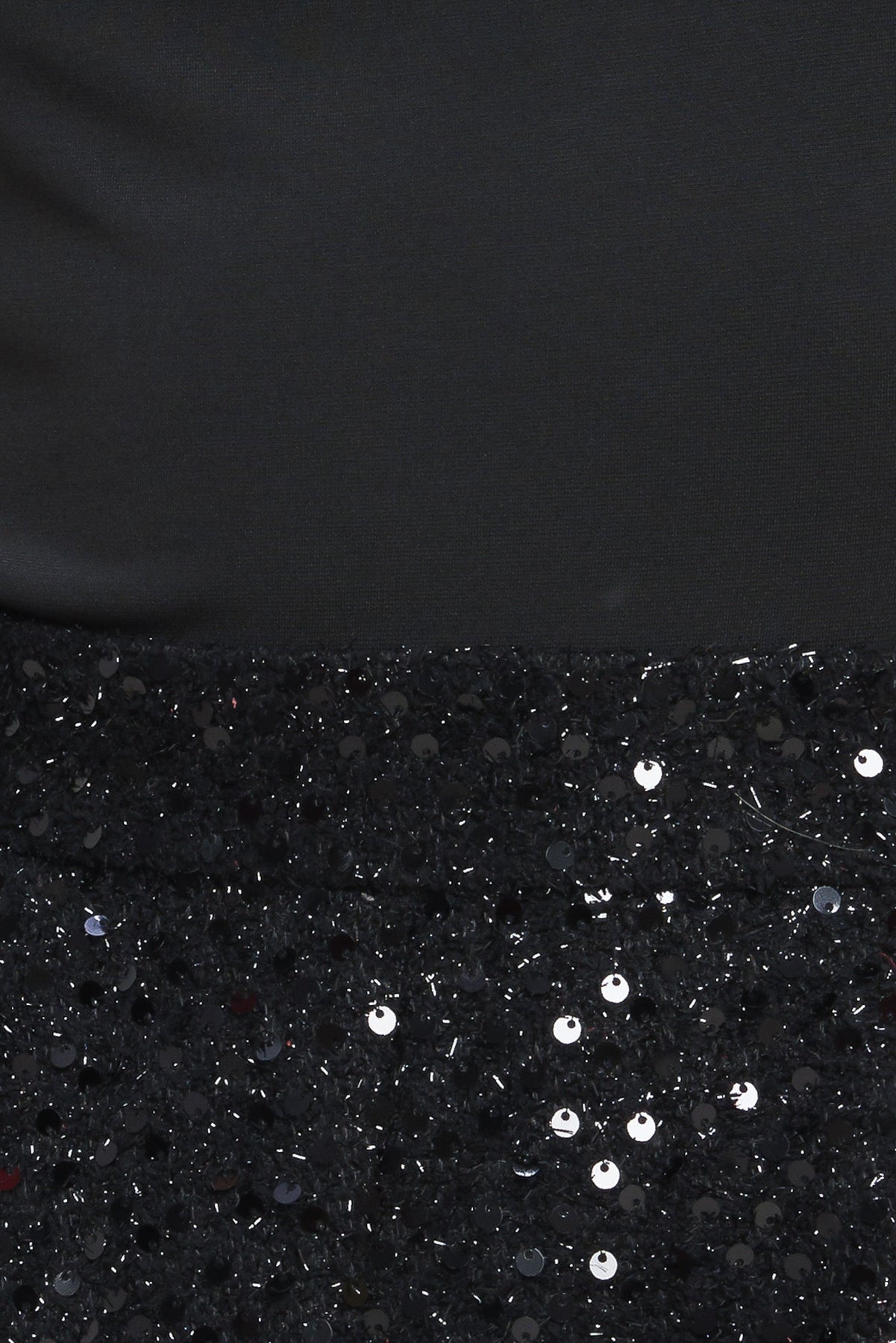 A knit top and sequin short romper featuring round neckline, sleeveless, sequin short, side tab with button detail, pockets and back zipper closure