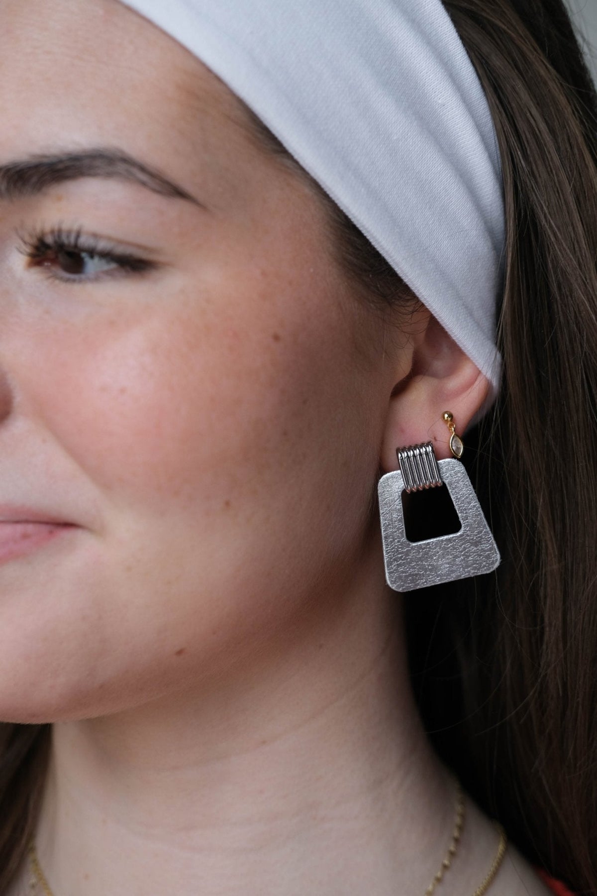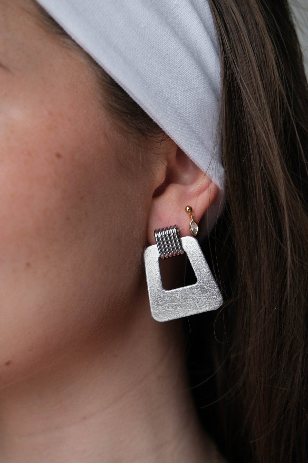 Timeless style meets a modern silhouette with the Avery earrings. This lightweight statement earring is created with our premium firm Vintage Silver leather and a beveled silver stud component.
