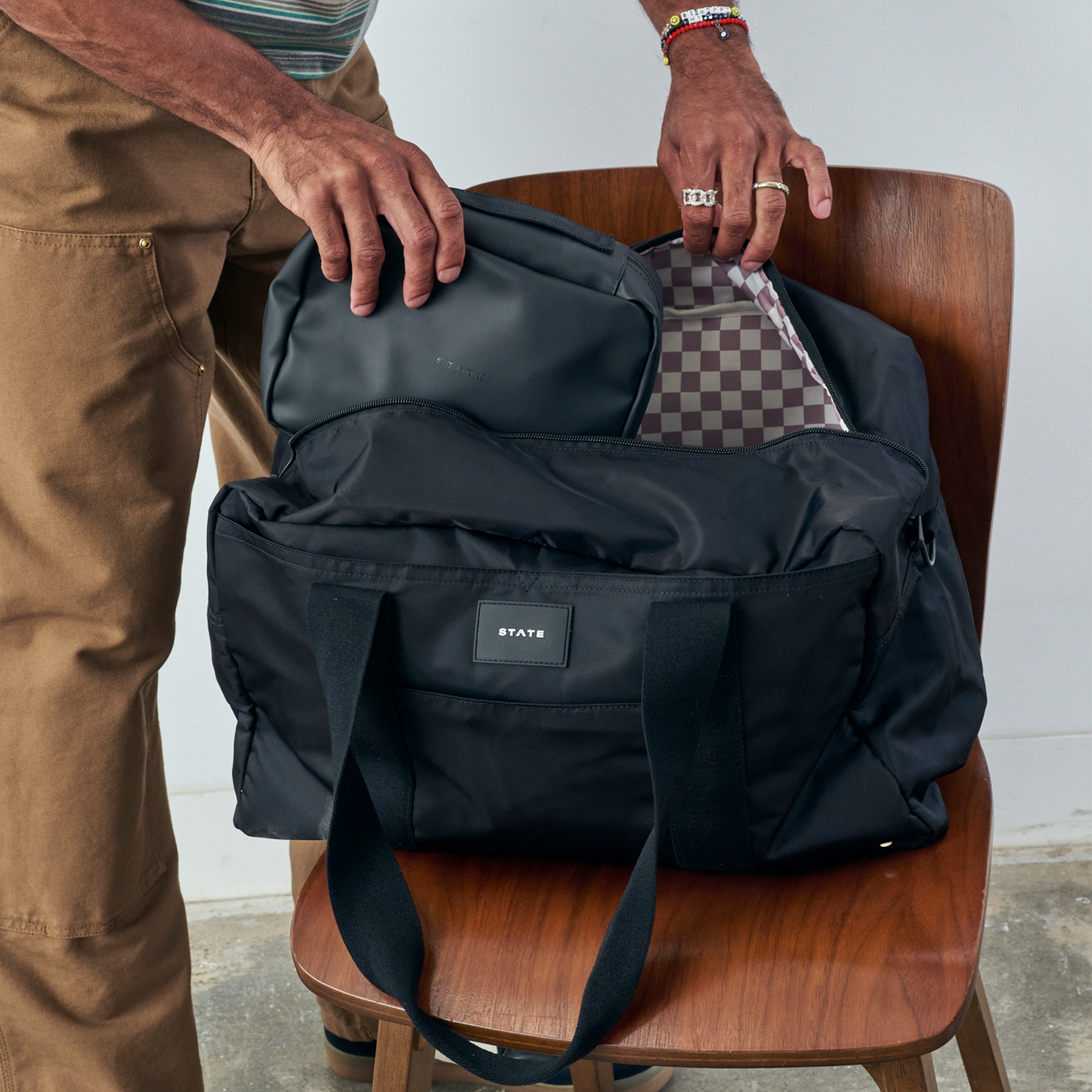 The ultimate weekender bag you’ve been looking for. This duffle-style carry-on slides onto your suitcase with a travel sleeve and is built with thoughtful details like a padded laptop pocket, multiple interior compartments, and detachable pouches for shoes or laundry. Designed for overpackers who want a travel bag that keeps them organized and looking put together.