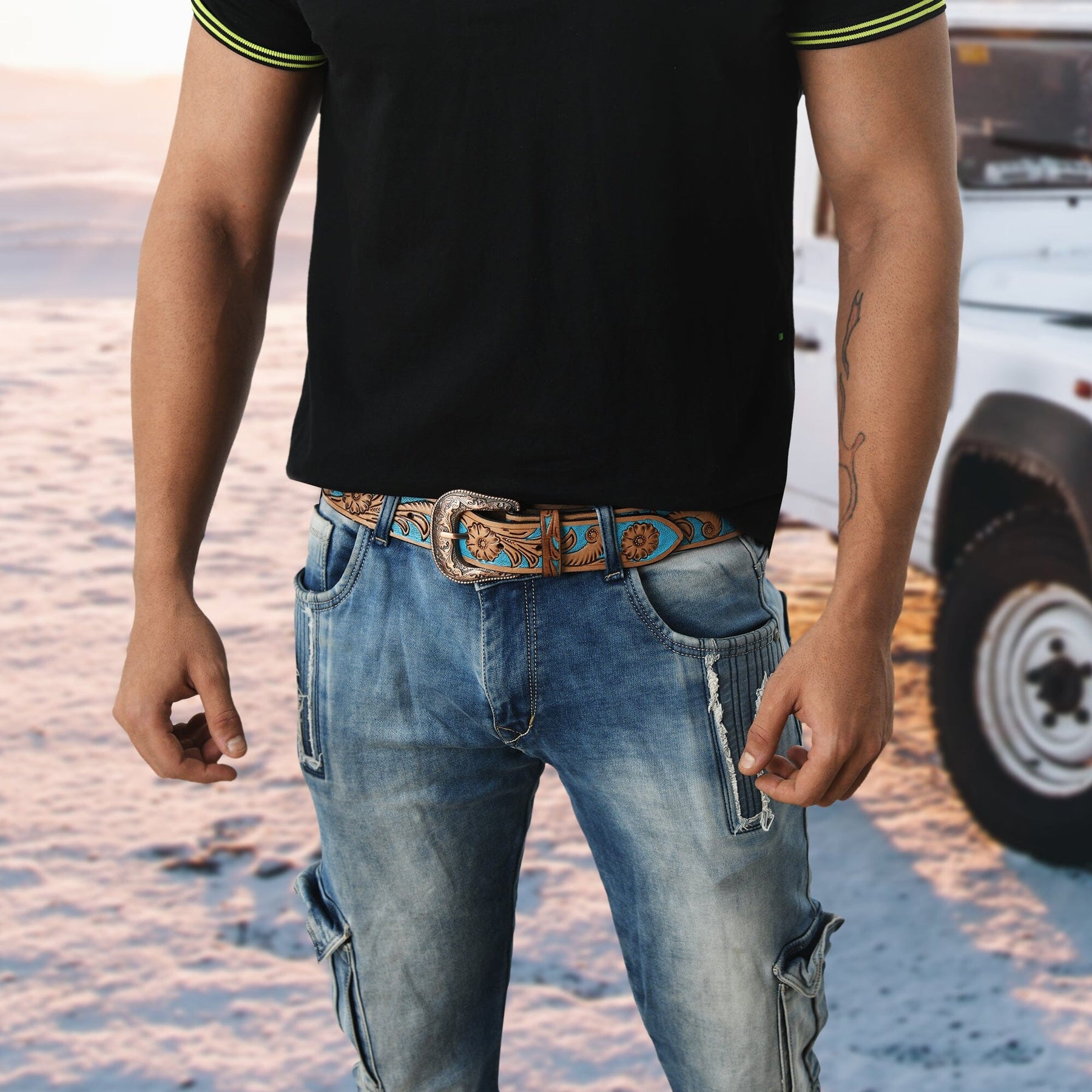 This western cowboy leather belt comes with a strong single-prong, eye-catching engraved designer buckle that is perfect for creating stylish vintage decoration for your daily outfit. This belt is hand carved and engraved using the highest quality leather for the strap and metal for the buckle.