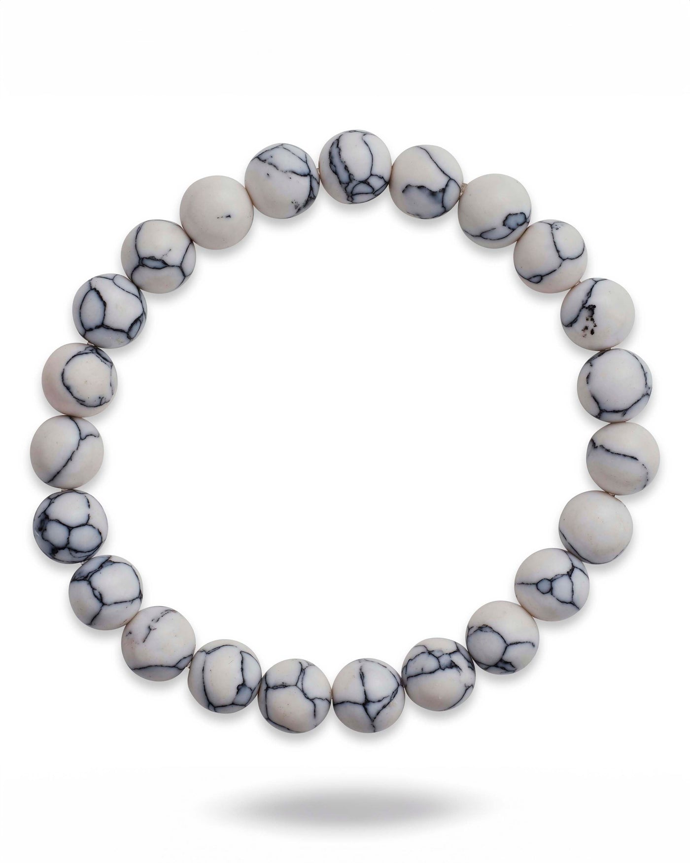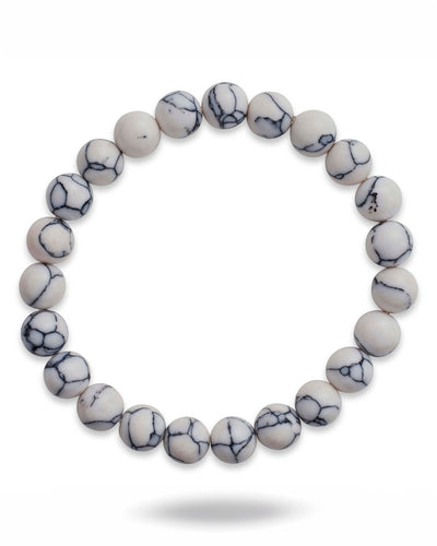 Indulge in luxury with our White Howlite Beaded Stretch Bracelet. Adorned with stunning white marbled beads, this stretch bracelet is a true statement piece. Effortlessly elevate any outfit with this elegant and exclusive accessory.