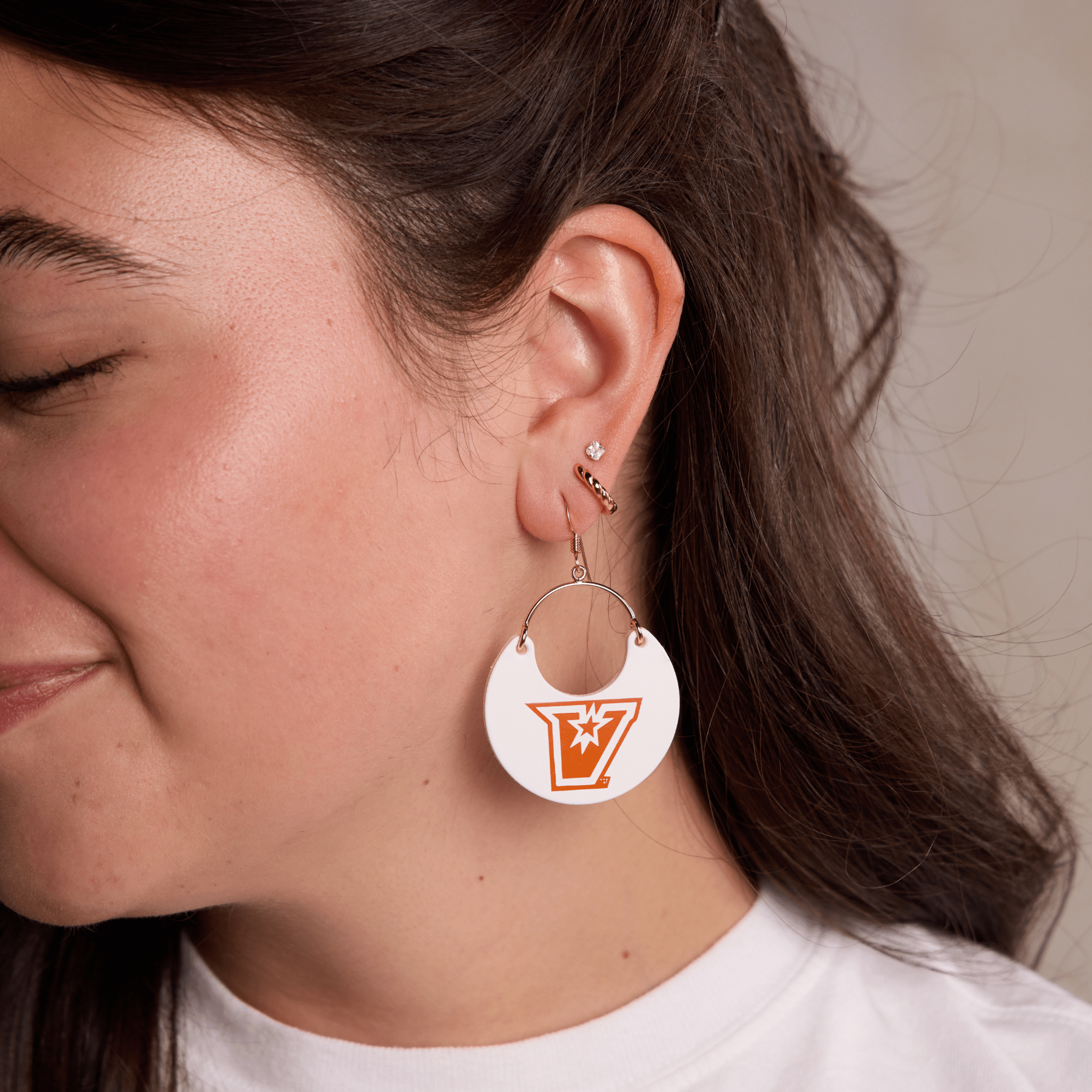 Get ready for gameday with our UTRGV Nina leather earrings. This spirited earring is officially licensed and perfect for showing off your team pride. Our earrings are crafted and hand-embossed in Kansas City from premium Italian leather for a standout look.