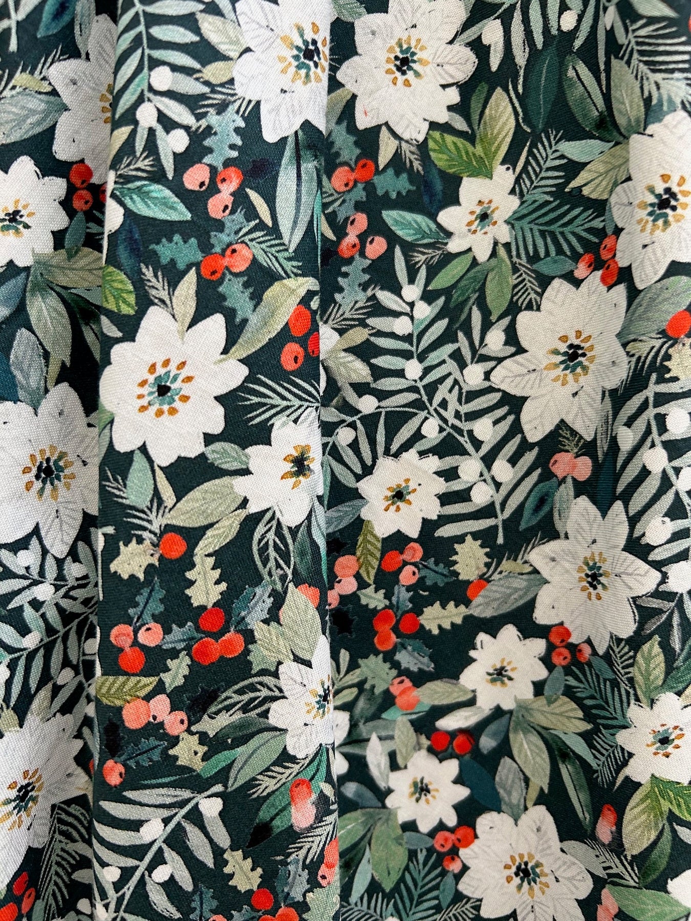 We'd love to introduce you to your new favorite retro skirt: Doris!  Shown in our Winter Floral print, this 100% cotton skirt features our fan-favorite elasticized back waistband for ease of wear, full pleated skirt with hidden side pockets, and a back zippered closure.  Doris is made in a longer length so she can accentuate all your vintage-inspired outfits!