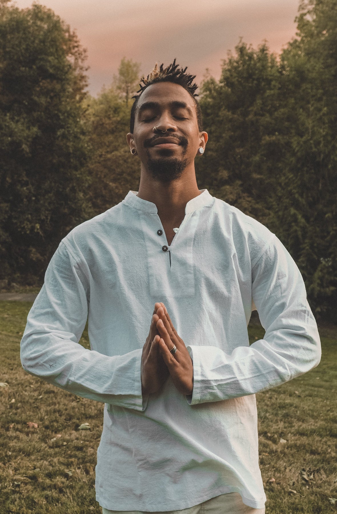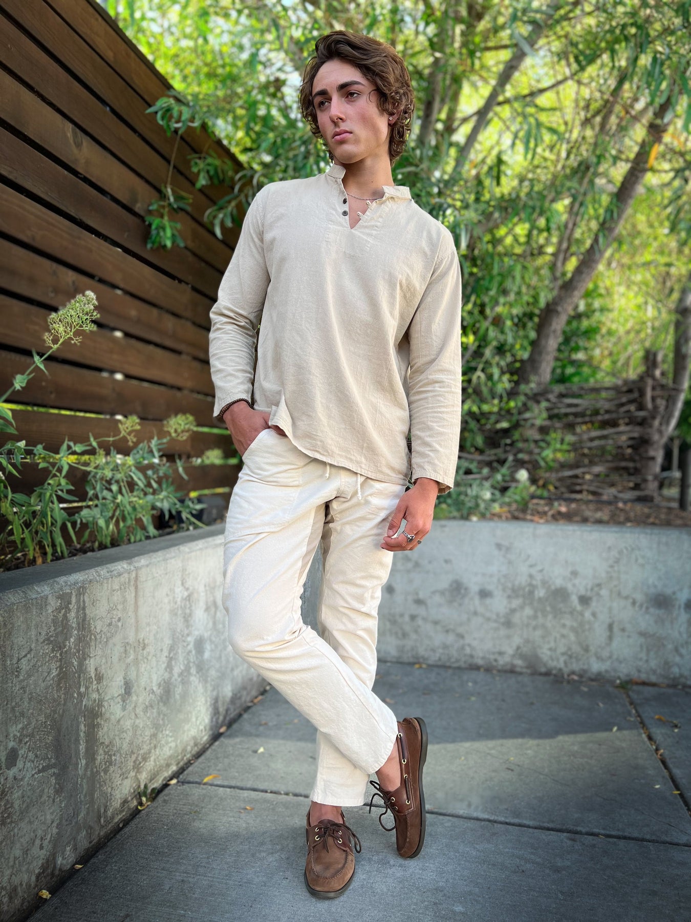 Interesting and trustworthy, this woven long sleeve shirt is substantially thick as not to be transparent, yet lightweight and breathable. Like all our clothing, this shirt is made from all-natural, 100% cotton. Our gauze clothing is handmade, hand-dyed.